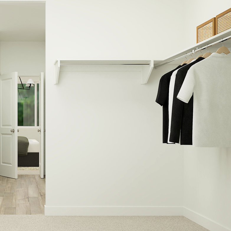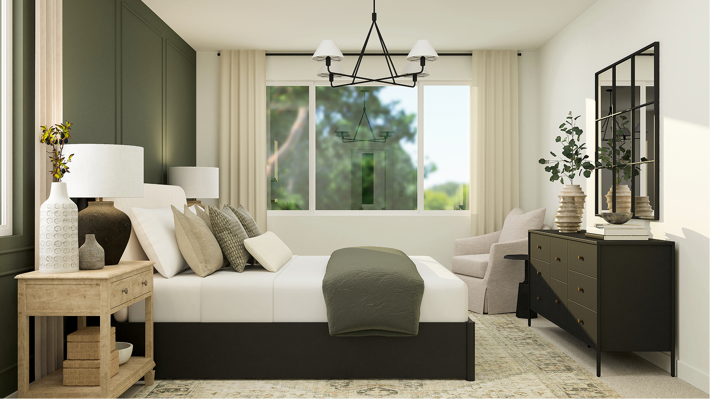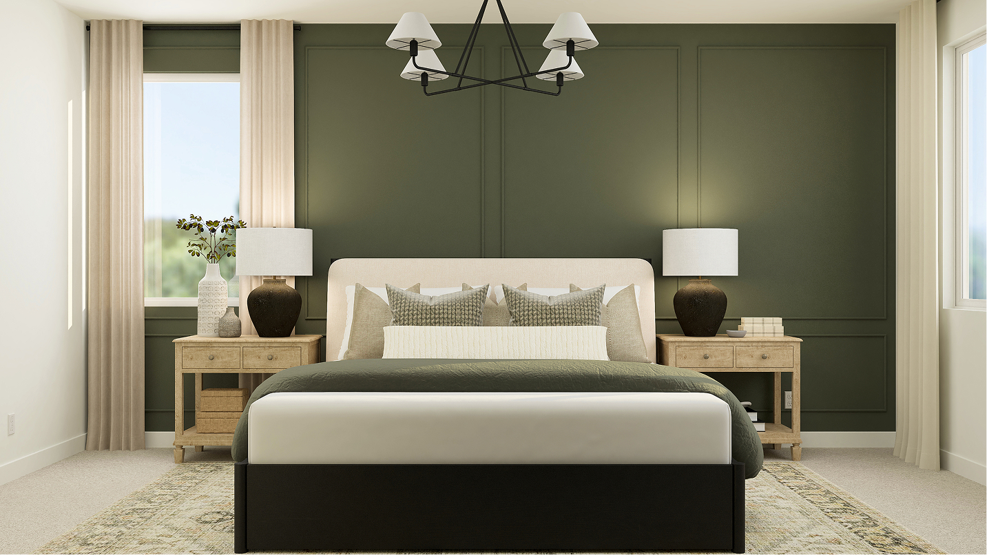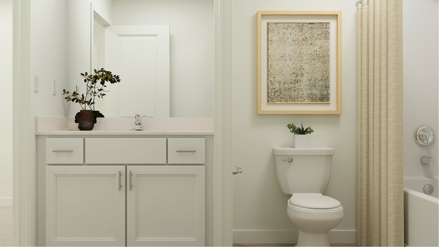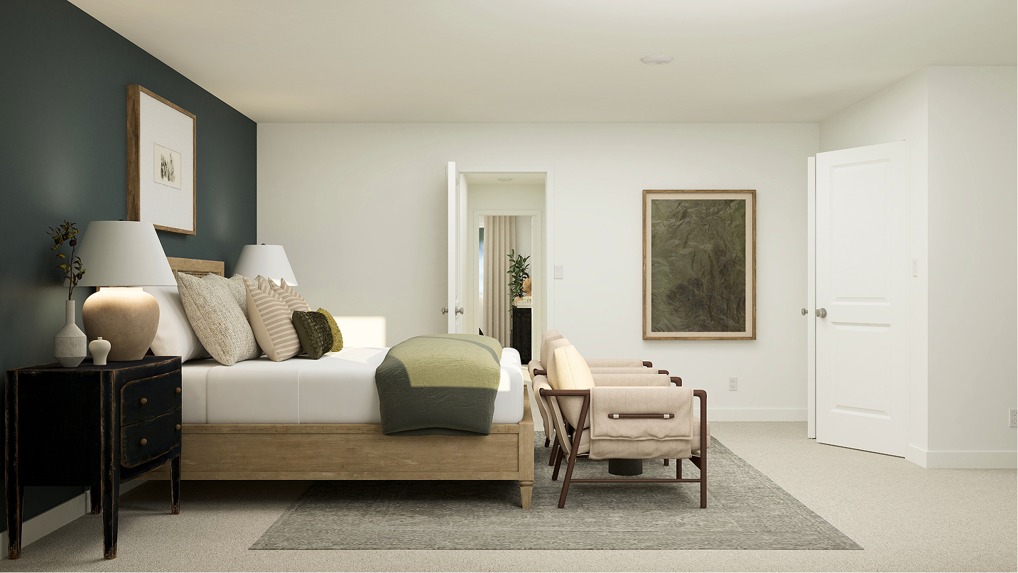 This new two-story home features a luxurious owner’s suite on the first floor, a tranquil retreat complete with a full bathroom and walk-in closet. A versatile living room is secluded near the front of the home, leading to a spacious open-concept floorplan where the kitchen, dining room and family room meet. Four additional bedrooms comprise the second floor.