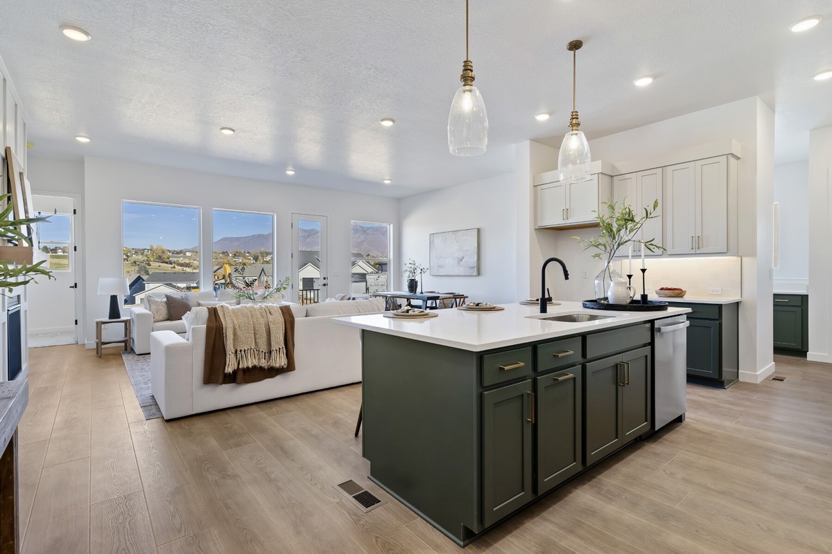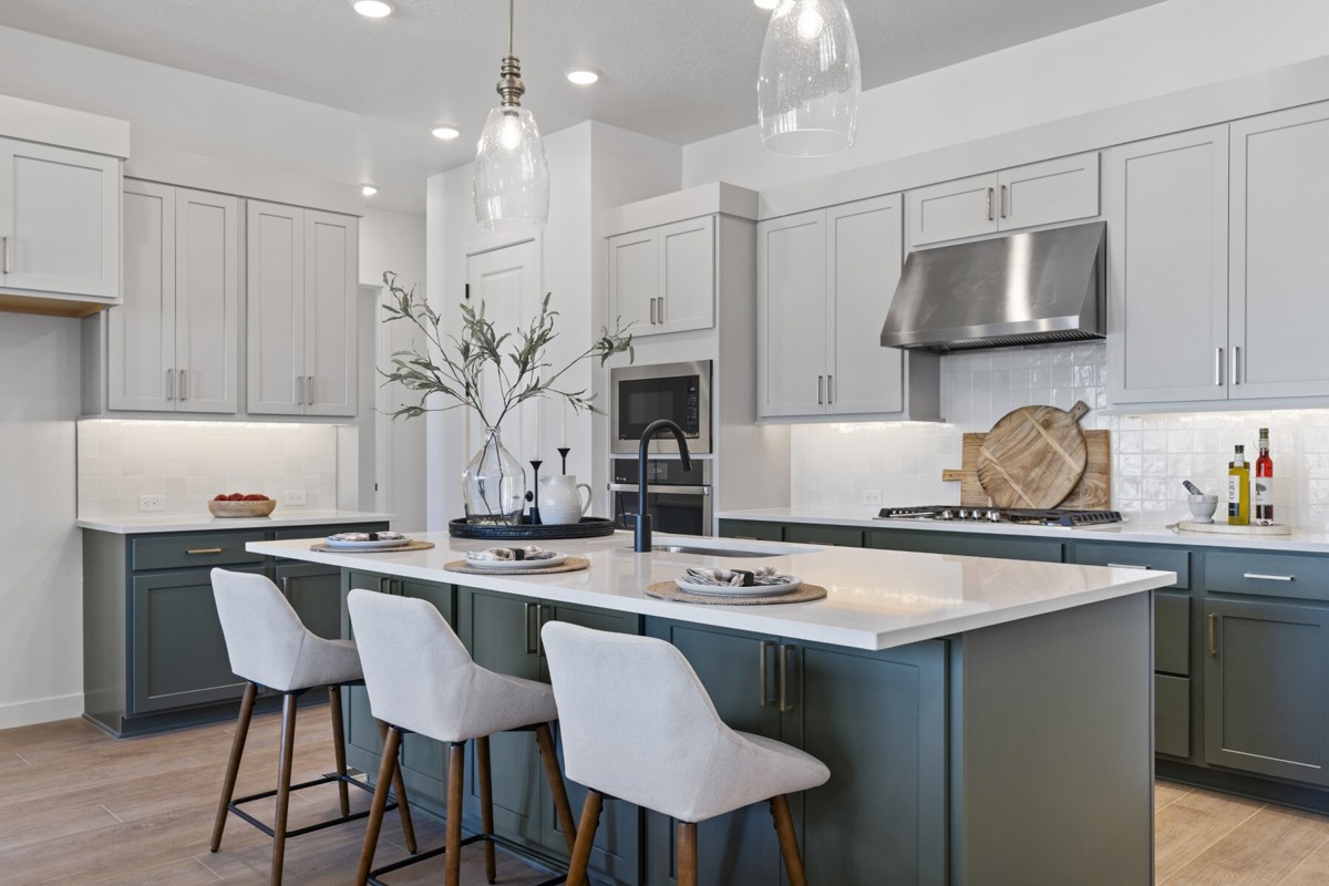 Welcome Home! This stunning and spacious rambler boasts 10-foot ceilings on the main floor with over-sized windows galore creating a bright and inviting aesthetic. The kitchen is a chef's delight, featuring sage cabinets, quartz countertops, and an 8-foot island ideal for meal prep and entertaining.