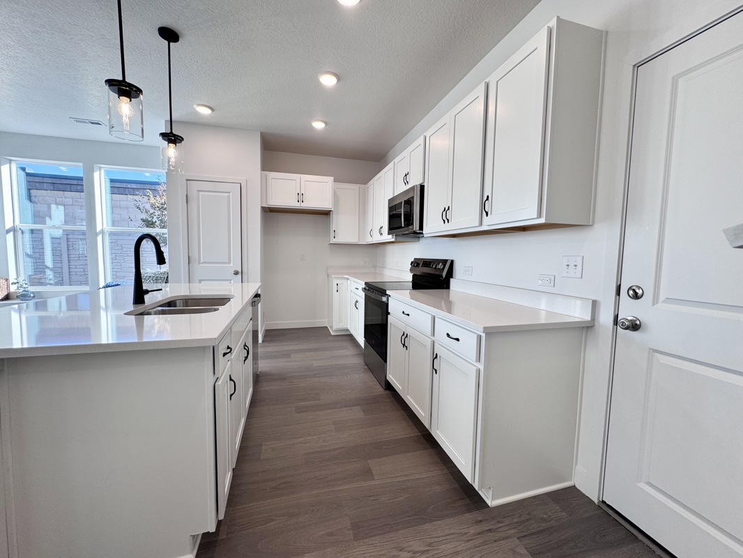 Experience modern living in this meticulously designed Nelson town home in a brand new gated community, where contemporary aesthetics meet urban convenience. This popular end unit boasts an open-concept layout, this residence ensures a seamless flow between kitchen, dining with large windows, and living areas, perfect for both entertaining and everyday life. Sleek Finishes: Granite countertops complement the modern white cabinetry, creating a sophisticated culinary space. Smart Home Integration: Equipped with programmable thermostats and energy-efficient appliances, this home offers both comfort and sustainability. Outdoor Oasis: The fully fenced backyard provides an ideal setting for BBQ and relaxation, offering a private retreat within the city. Spacious Accommodations: Featuring 3 bedrooms and 2 baths, along with a versatile loft area, there's ample space to suit various lifestyle needs. Ample Parking and Storage: An extended 2-car garage not only accommodates vehicles but also offers generous storage solutions. Prime Location: Situated close to shopping centers, dining establishments, and reputable schools, convenience is at your doorstep. This home qualifies for all current incentives, making the dream of homeownership more attainable. Embrace modern luxury and schedule your appointment today to discover all that this exceptional town home has to offer.